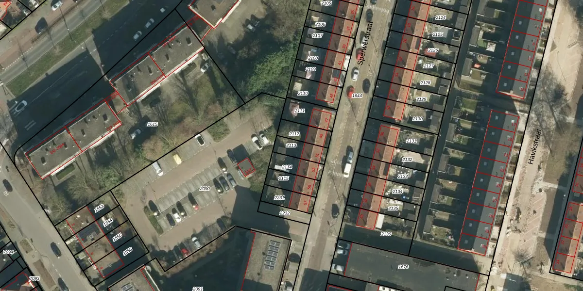 Gebruik de zoekbalk of klik op een perceel om informatie over het perceel te bekijken.