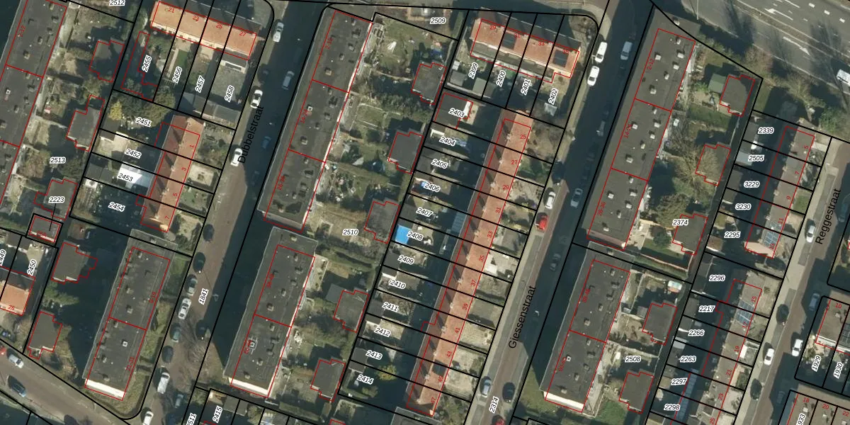 Gebruik de zoekbalk of klik op een perceel om informatie over het perceel te bekijken.