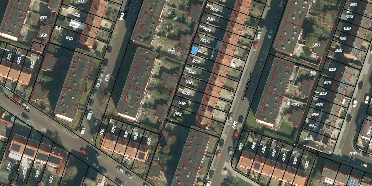 Gebruik de zoekbalk of klik op een perceel om informatie over het perceel te bekijken.