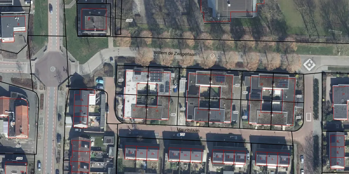 Gebruik de zoekbalk of klik op een perceel om informatie over het perceel te bekijken.