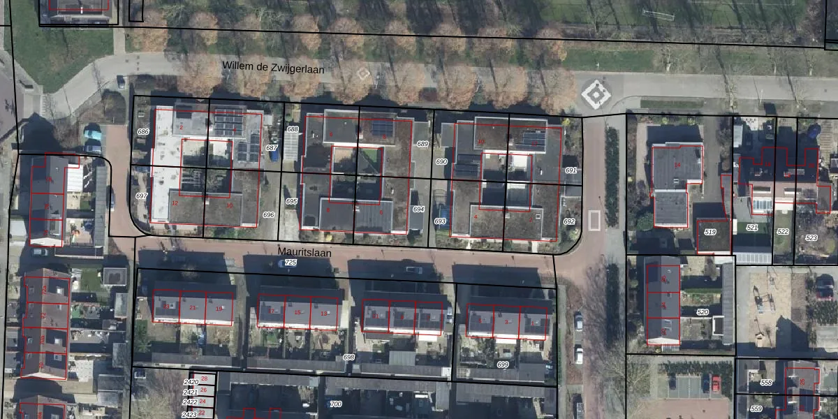 Gebruik de zoekbalk of klik op een perceel om informatie over het perceel te bekijken.