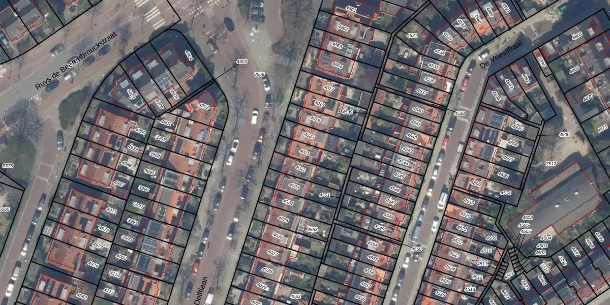 Gebruik de zoekbalk of klik op een perceel om informatie over het perceel te bekijken.