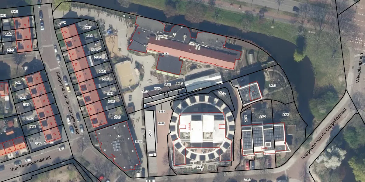 Gebruik de zoekbalk of klik op een perceel om informatie over het perceel te bekijken.