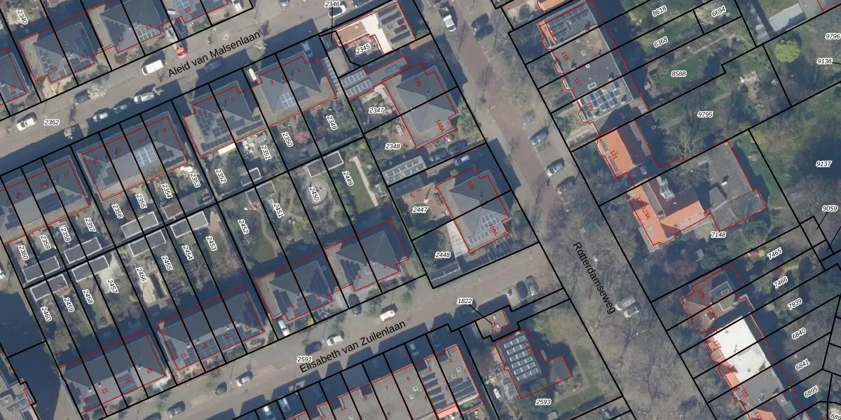 Gebruik de zoekbalk of klik op een perceel om informatie over het perceel te bekijken.