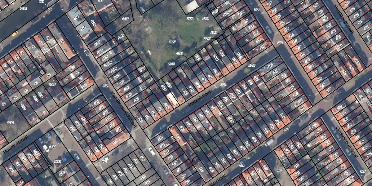 Gebruik de zoekbalk of klik op een perceel om informatie over het perceel te bekijken.
