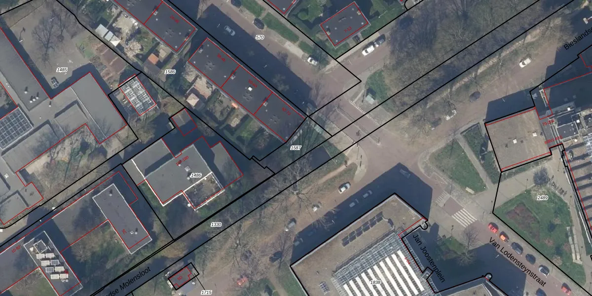 Gebruik de zoekbalk of klik op een perceel om informatie over het perceel te bekijken.