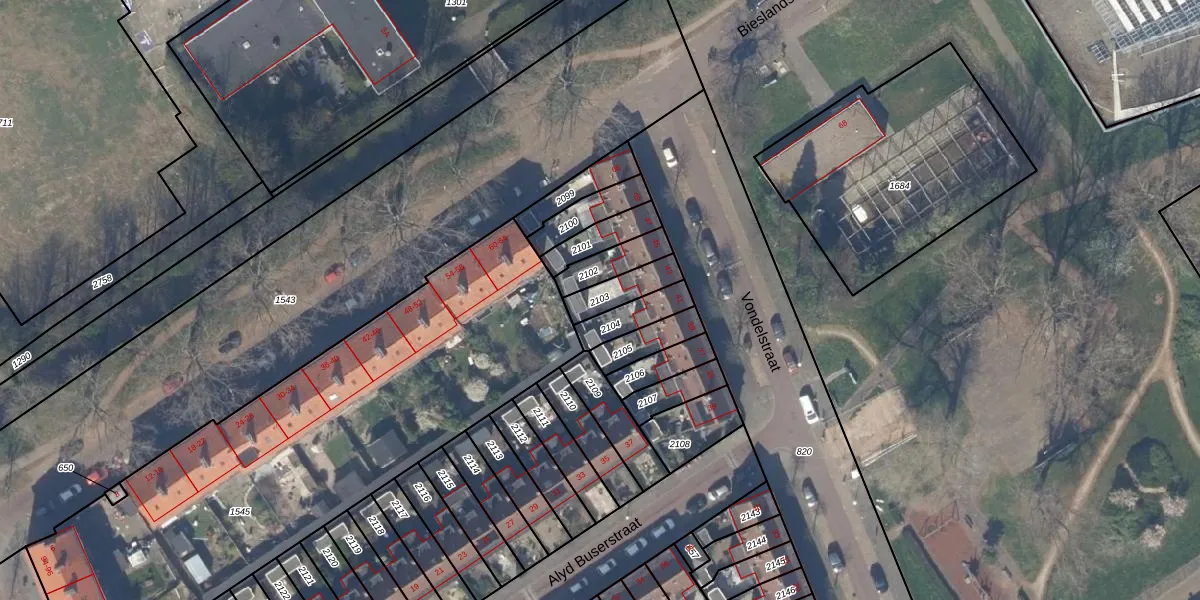 Gebruik de zoekbalk of klik op een perceel om informatie over het perceel te bekijken.