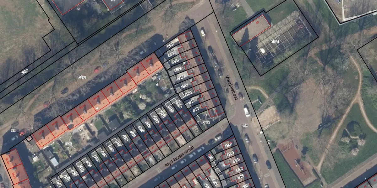 Gebruik de zoekbalk of klik op een perceel om informatie over het perceel te bekijken.