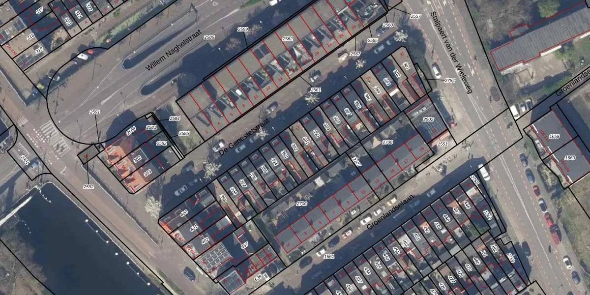 Gebruik de zoekbalk of klik op een perceel om informatie over het perceel te bekijken.