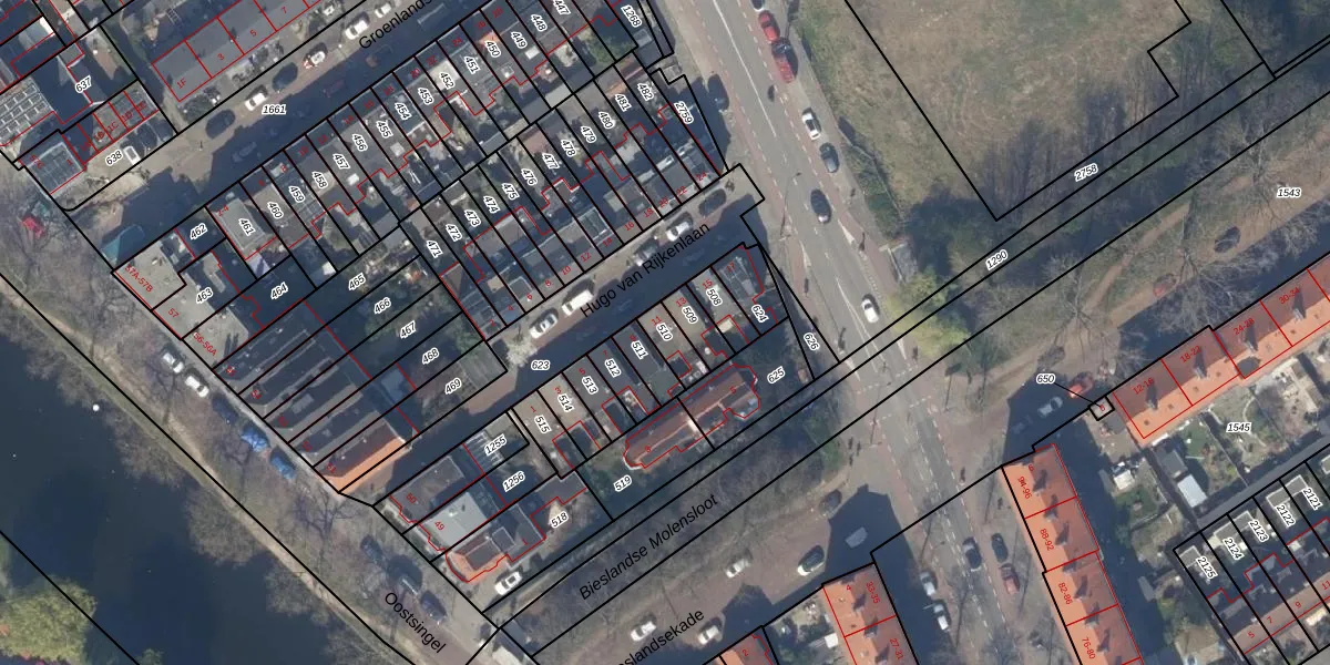 Gebruik de zoekbalk of klik op een perceel om informatie over het perceel te bekijken.