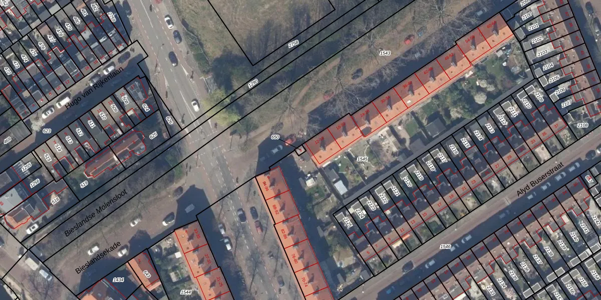 Gebruik de zoekbalk of klik op een perceel om informatie over het perceel te bekijken.