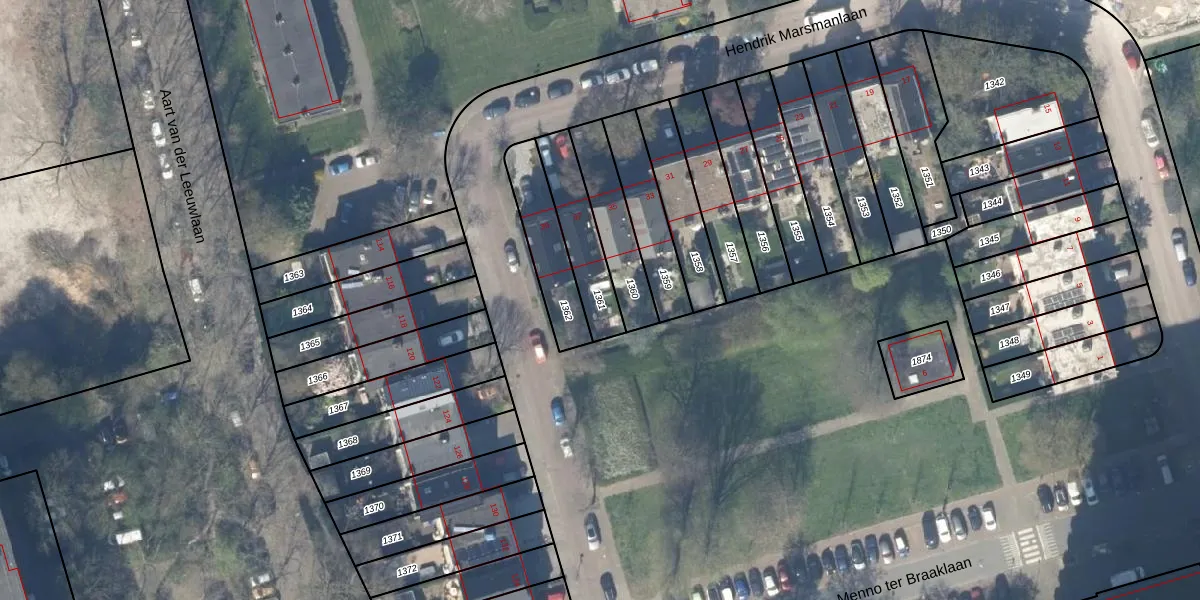 Gebruik de zoekbalk of klik op een perceel om informatie over het perceel te bekijken.