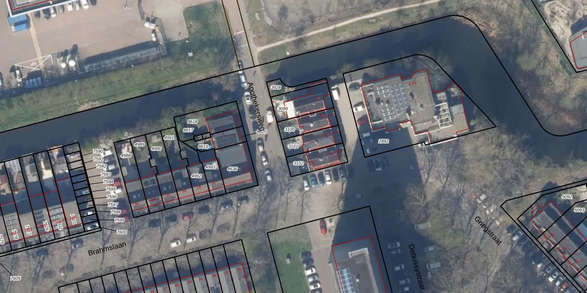 Gebruik de zoekbalk of klik op een perceel om informatie over het perceel te bekijken.