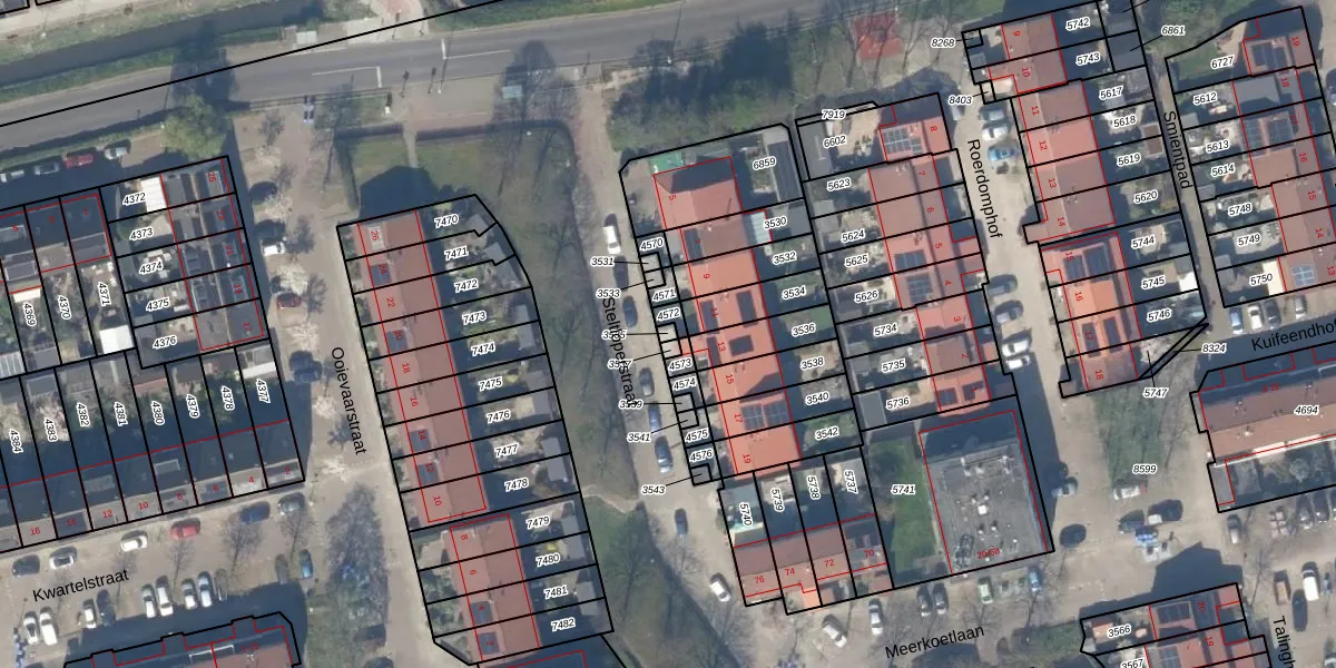 Gebruik de zoekbalk of klik op een perceel om informatie over het perceel te bekijken.