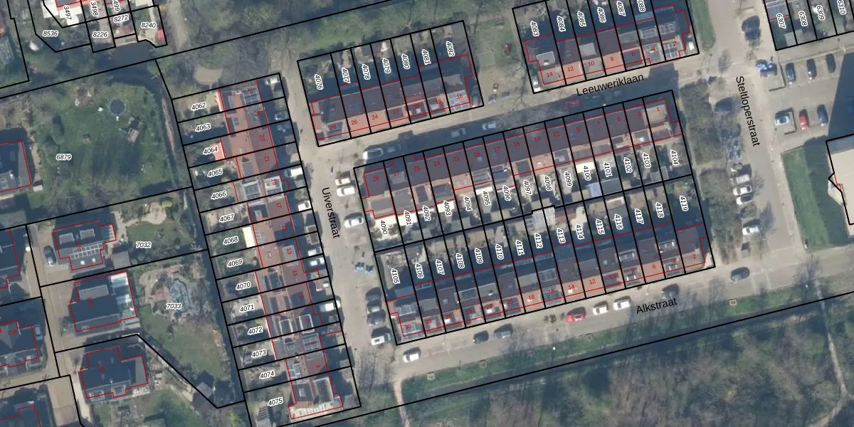 Gebruik de zoekbalk of klik op een perceel om informatie over het perceel te bekijken.
