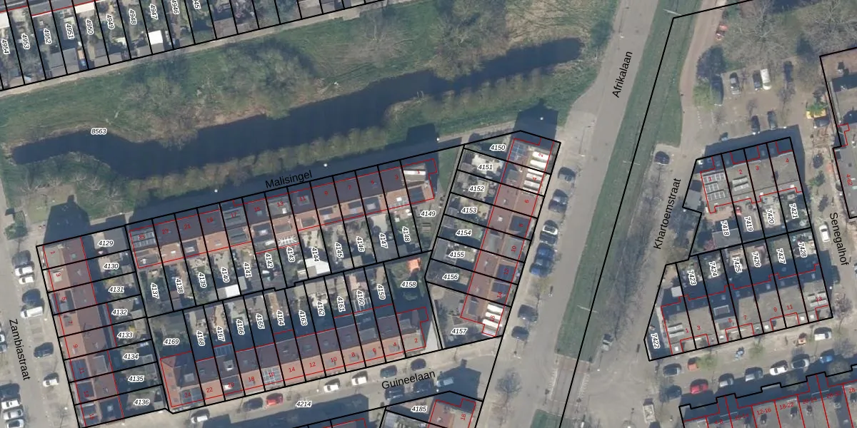 Gebruik de zoekbalk of klik op een perceel om informatie over het perceel te bekijken.