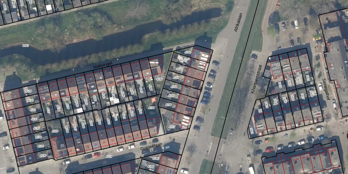 Gebruik de zoekbalk of klik op een perceel om informatie over het perceel te bekijken.