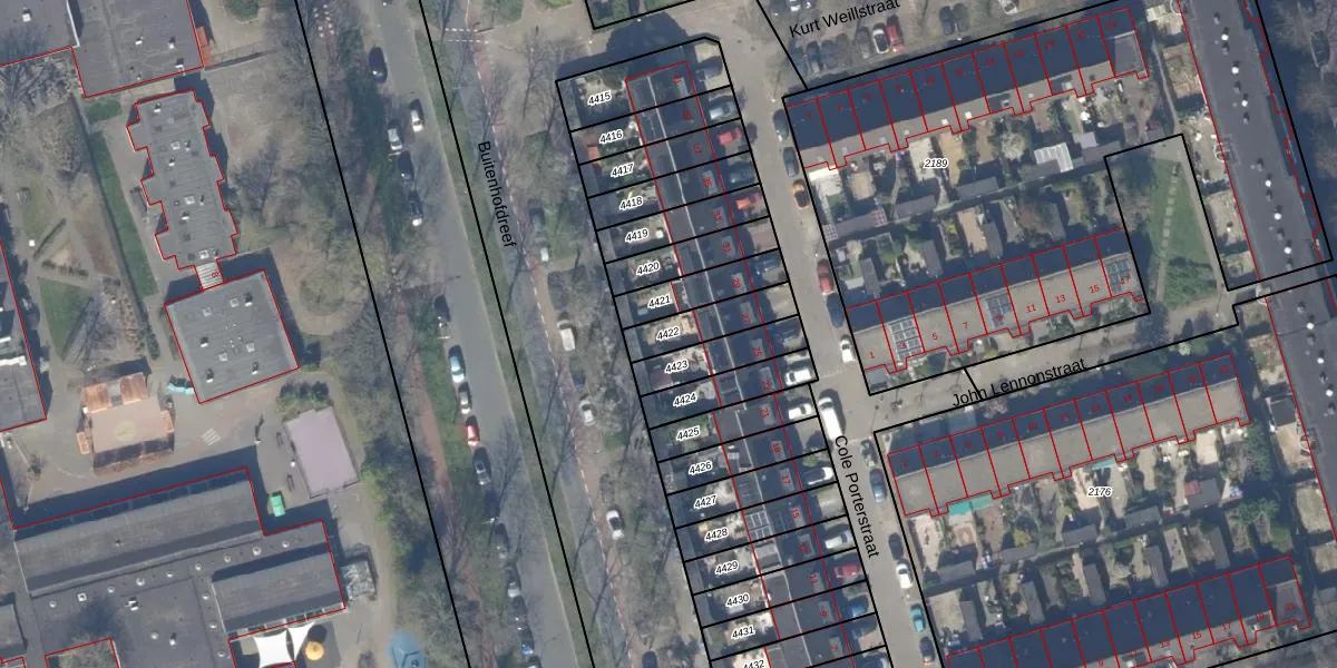 Gebruik de zoekbalk of klik op een perceel om informatie over het perceel te bekijken.
