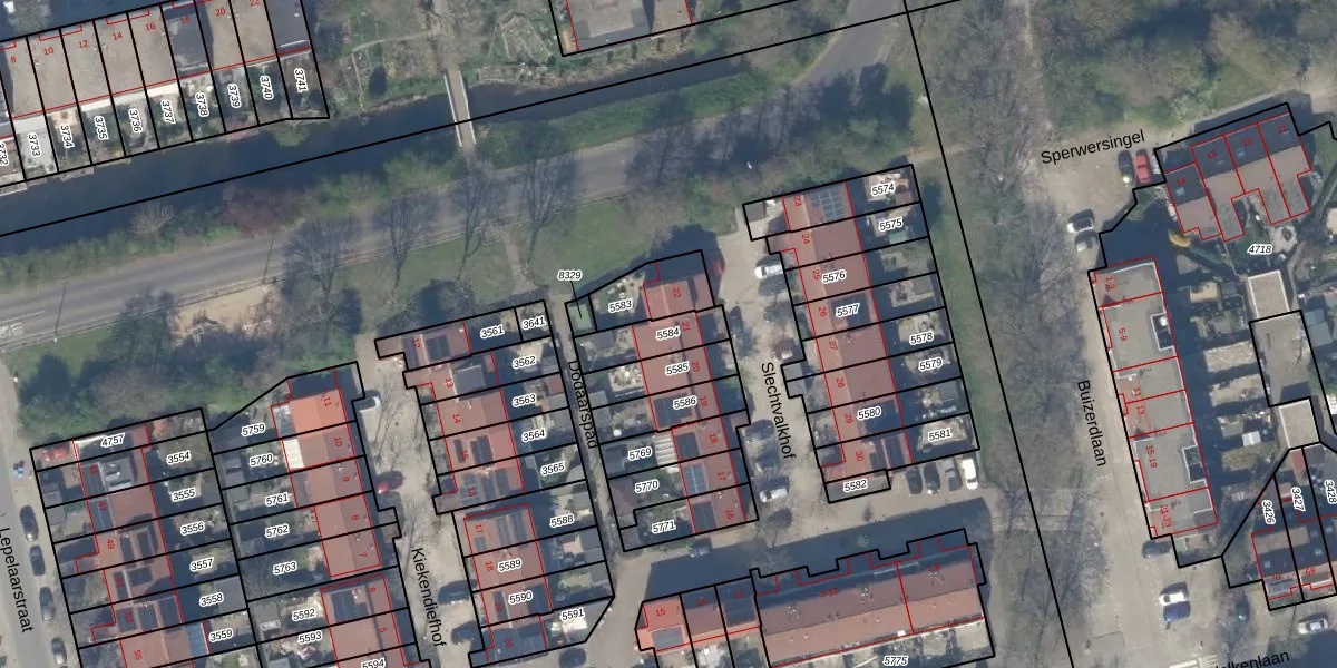 Gebruik de zoekbalk of klik op een perceel om informatie over het perceel te bekijken.