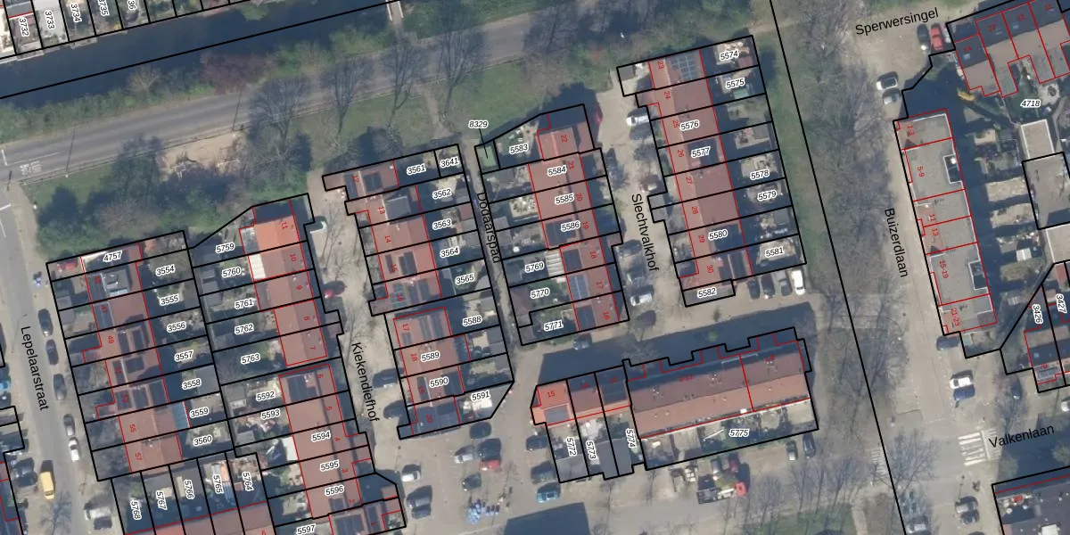 Gebruik de zoekbalk of klik op een perceel om informatie over het perceel te bekijken.