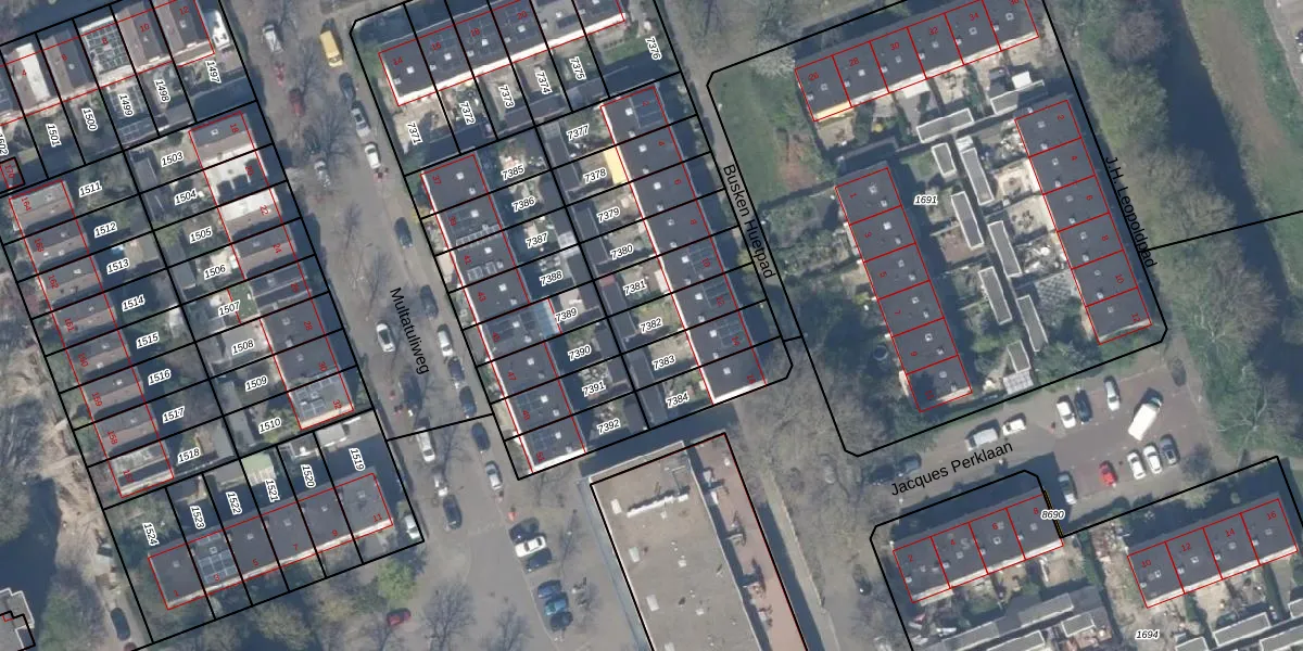 Gebruik de zoekbalk of klik op een perceel om informatie over het perceel te bekijken.