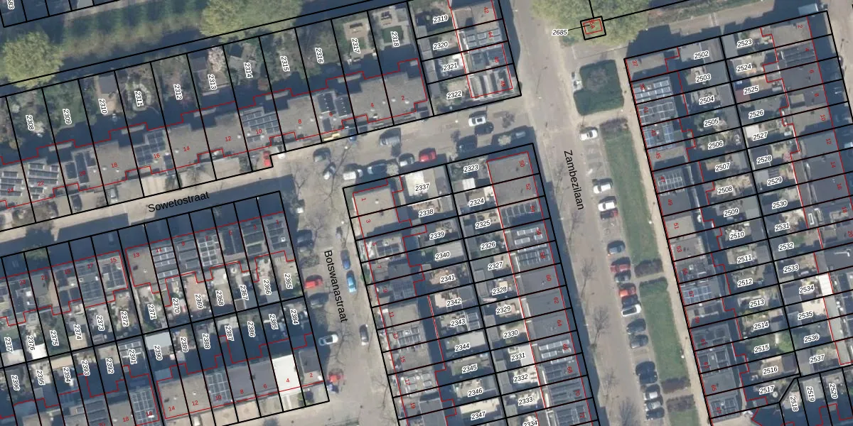 Gebruik de zoekbalk of klik op een perceel om informatie over het perceel te bekijken.