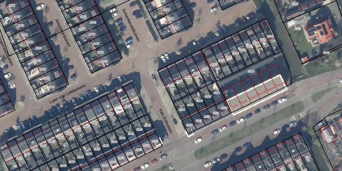 Gebruik de zoekbalk of klik op een perceel om informatie over het perceel te bekijken.