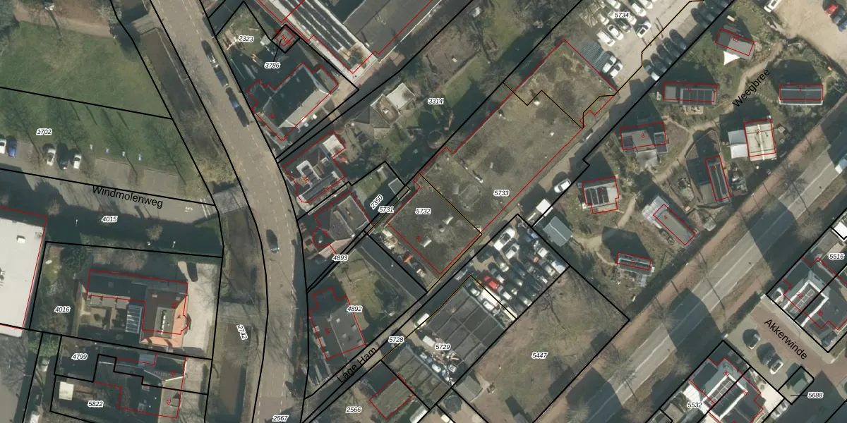 Gebruik de zoekbalk of klik op een perceel om informatie over het perceel te bekijken.