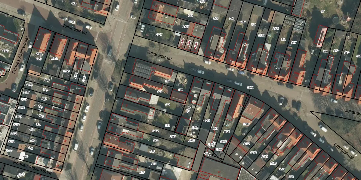 Gebruik de zoekbalk of klik op een perceel om informatie over het perceel te bekijken.