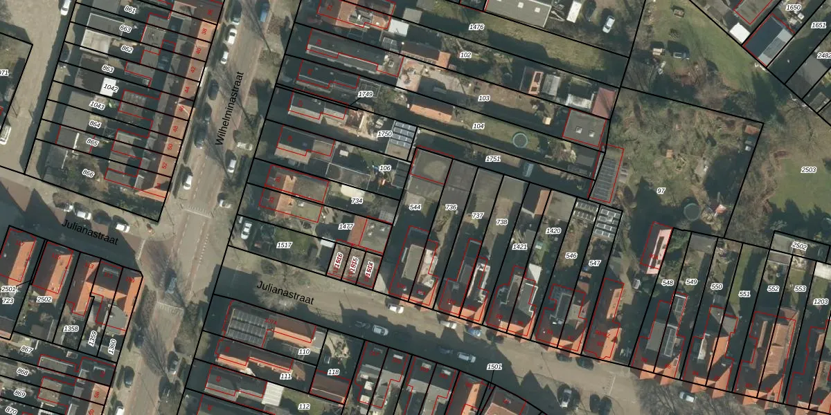 Gebruik de zoekbalk of klik op een perceel om informatie over het perceel te bekijken.