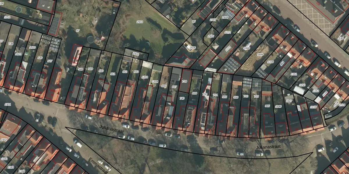 Gebruik de zoekbalk of klik op een perceel om informatie over het perceel te bekijken.