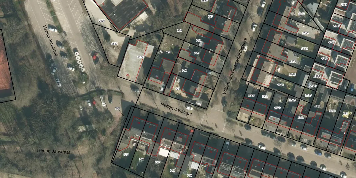 Gebruik de zoekbalk of klik op een perceel om informatie over het perceel te bekijken.
