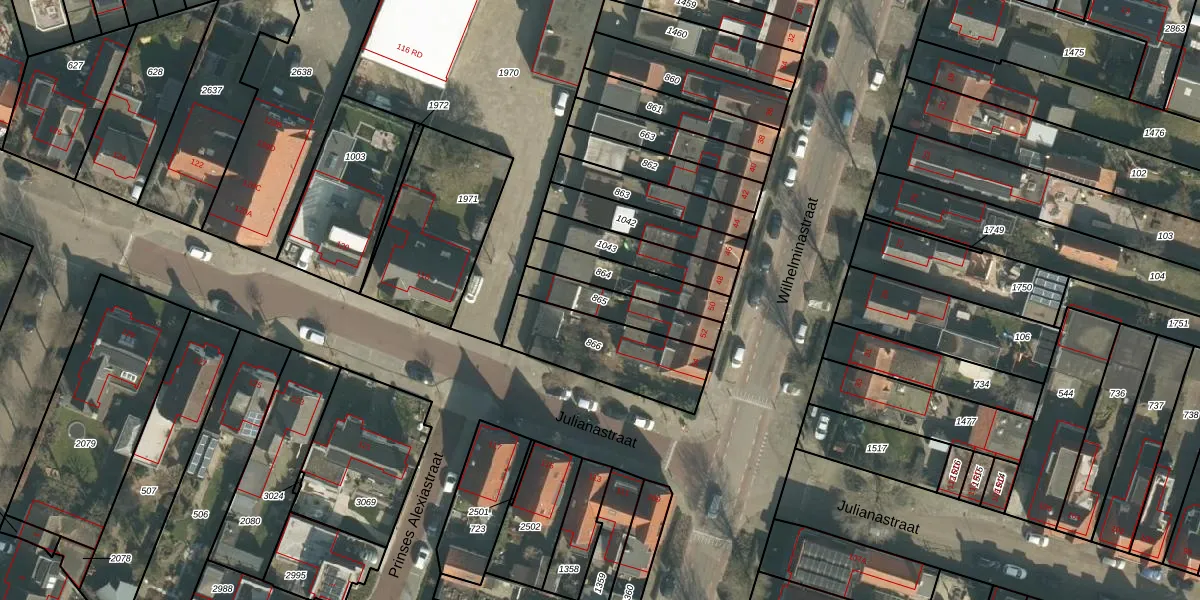 Gebruik de zoekbalk of klik op een perceel om informatie over het perceel te bekijken.