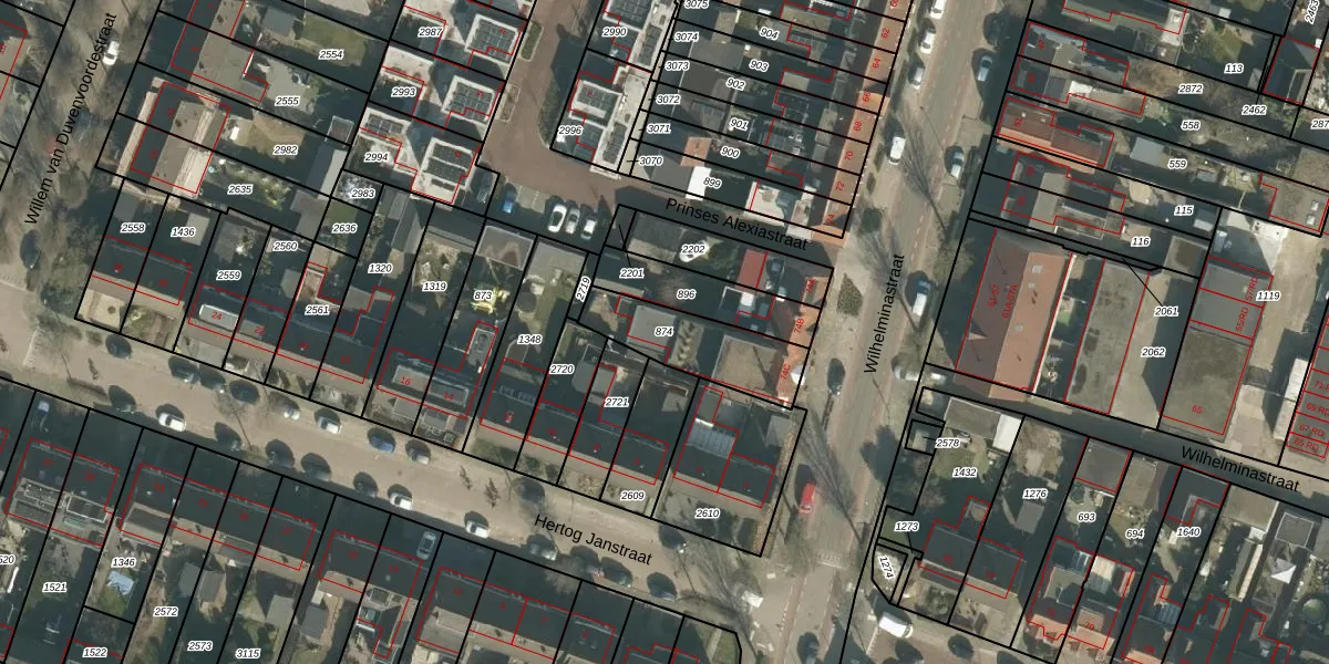 Gebruik de zoekbalk of klik op een perceel om informatie over het perceel te bekijken.