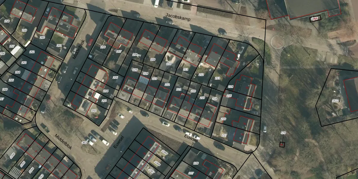 Gebruik de zoekbalk of klik op een perceel om informatie over het perceel te bekijken.