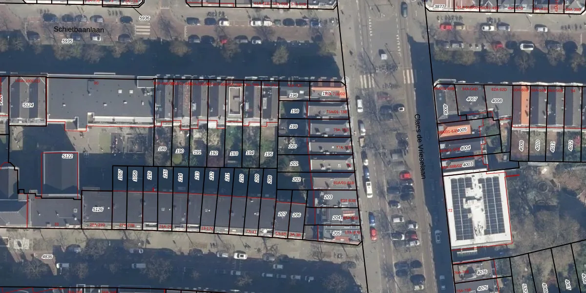Gebruik de zoekbalk of klik op een perceel om informatie over het perceel te bekijken.