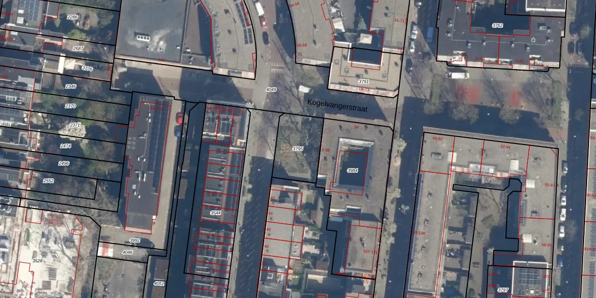 Gebruik de zoekbalk of klik op een perceel om informatie over het perceel te bekijken.