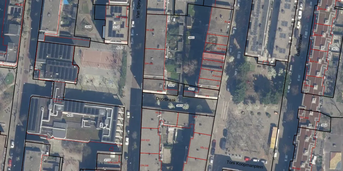 Gebruik de zoekbalk of klik op een perceel om informatie over het perceel te bekijken.
