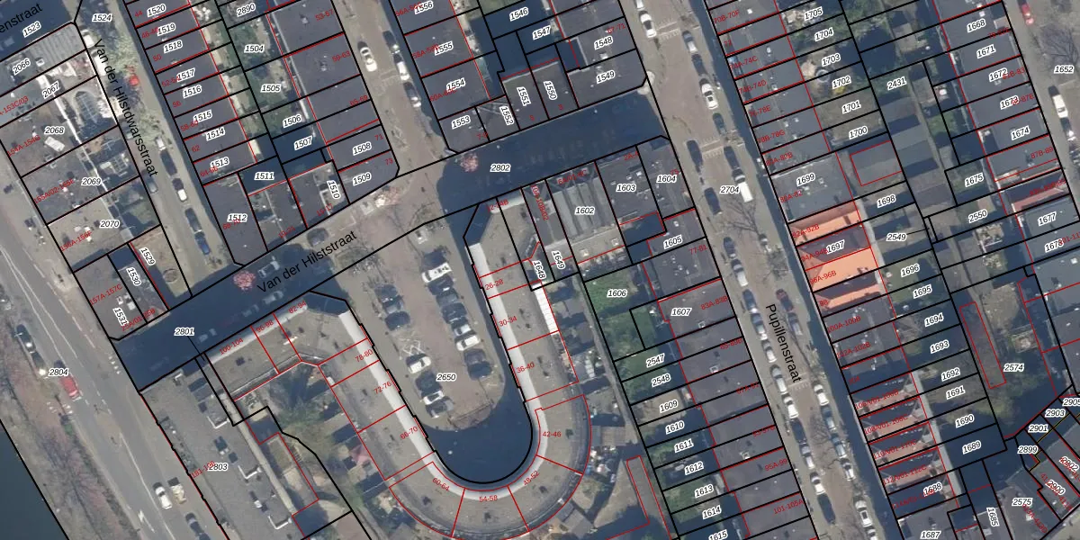 Gebruik de zoekbalk of klik op een perceel om informatie over het perceel te bekijken.