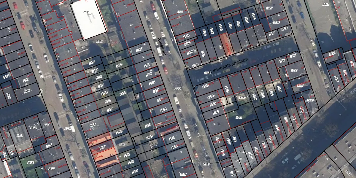 Gebruik de zoekbalk of klik op een perceel om informatie over het perceel te bekijken.