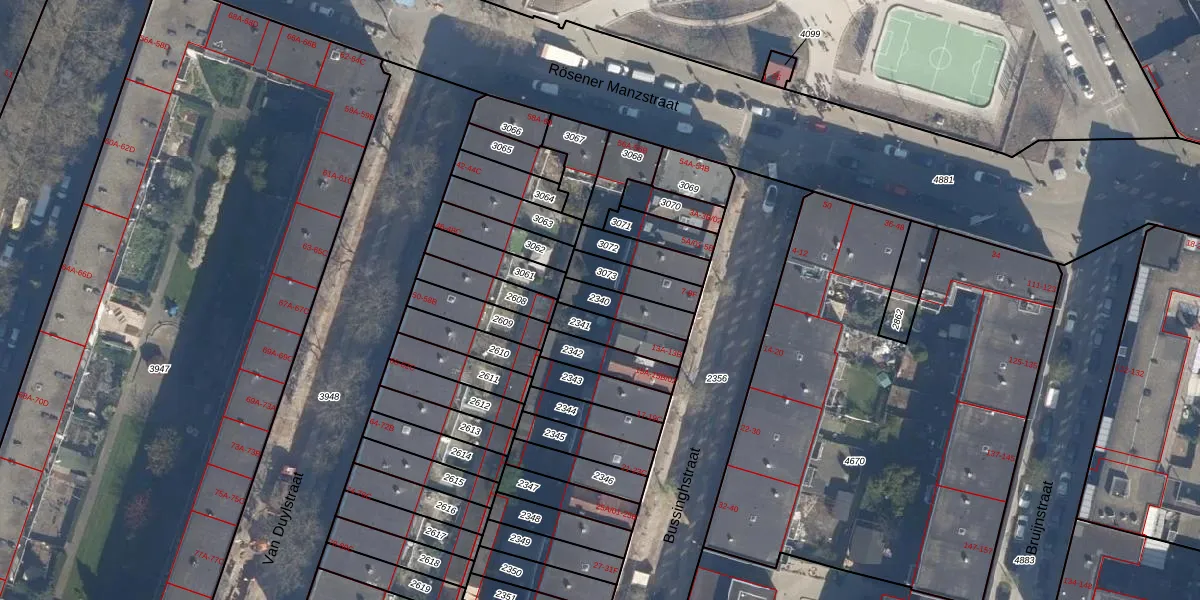 Gebruik de zoekbalk of klik op een perceel om informatie over het perceel te bekijken.
