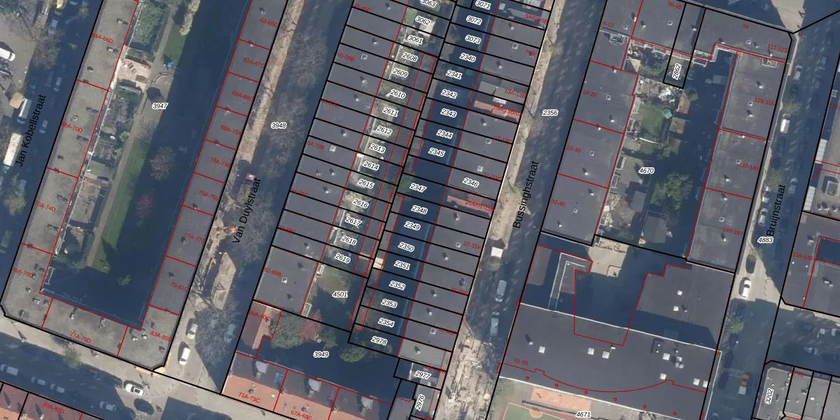 Gebruik de zoekbalk of klik op een perceel om informatie over het perceel te bekijken.