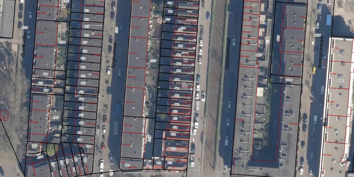 Gebruik de zoekbalk of klik op een perceel om informatie over het perceel te bekijken.