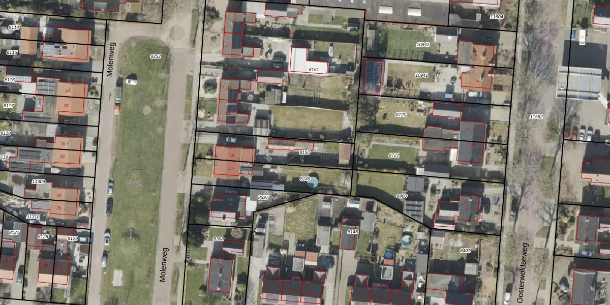 Gebruik de zoekbalk of klik op een perceel om informatie over het perceel te bekijken.