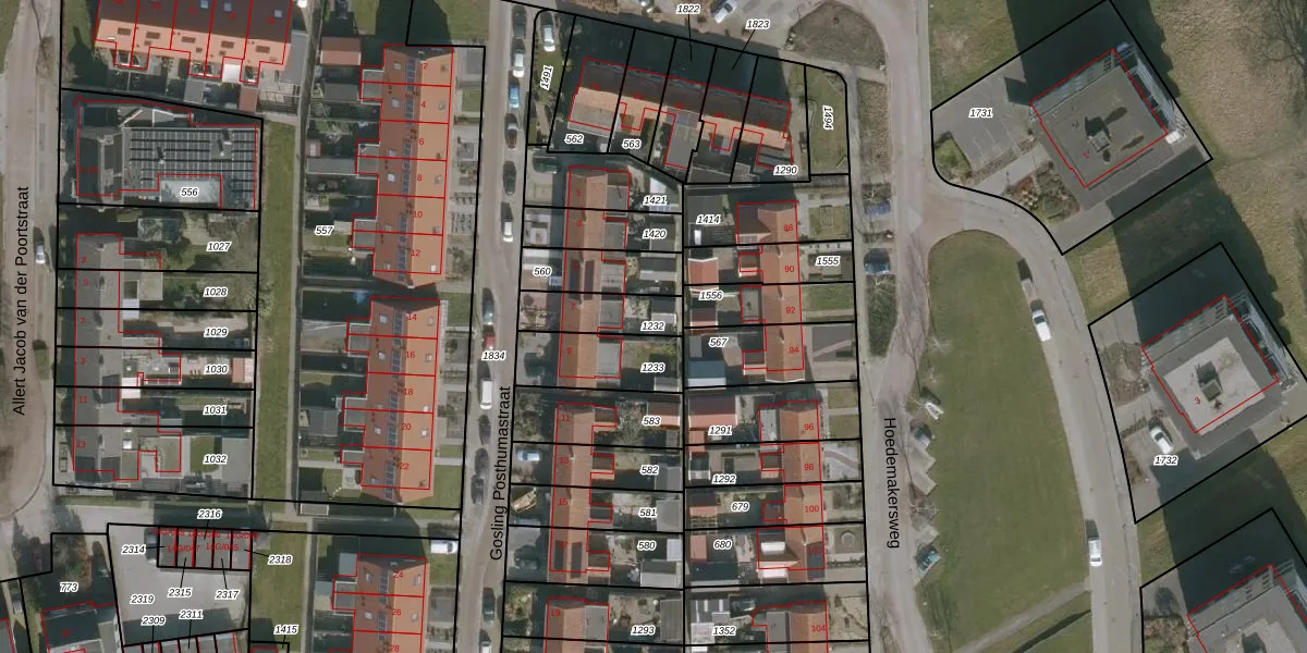 Gebruik de zoekbalk of klik op een perceel om informatie over het perceel te bekijken.
