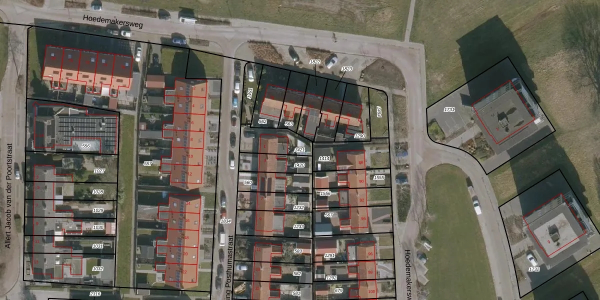 Gebruik de zoekbalk of klik op een perceel om informatie over het perceel te bekijken.