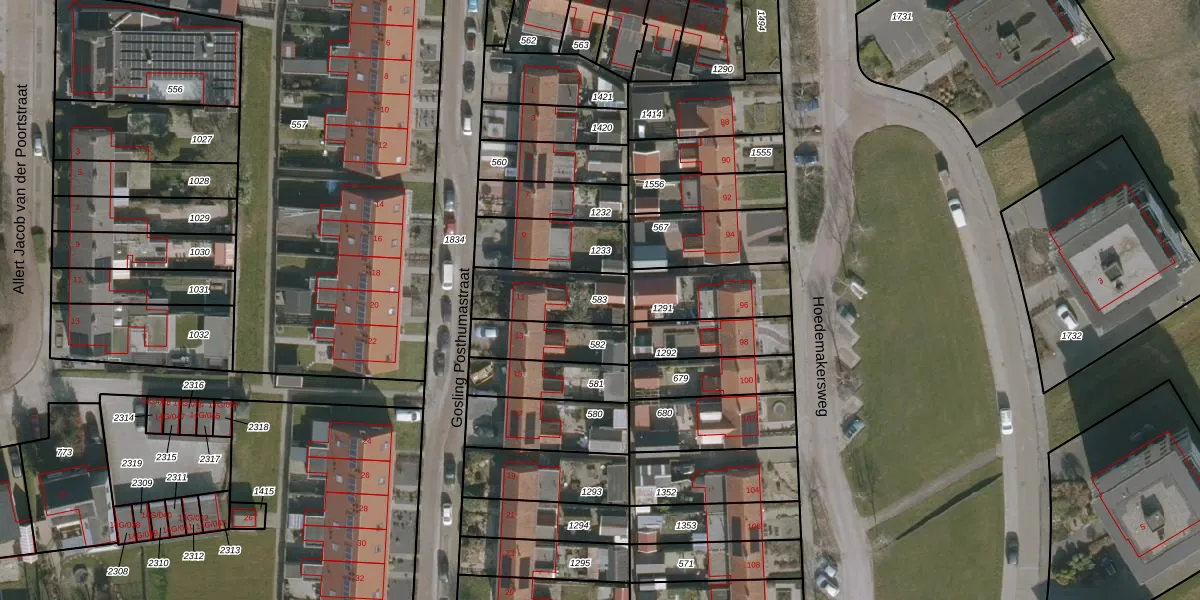 Gebruik de zoekbalk of klik op een perceel om informatie over het perceel te bekijken.