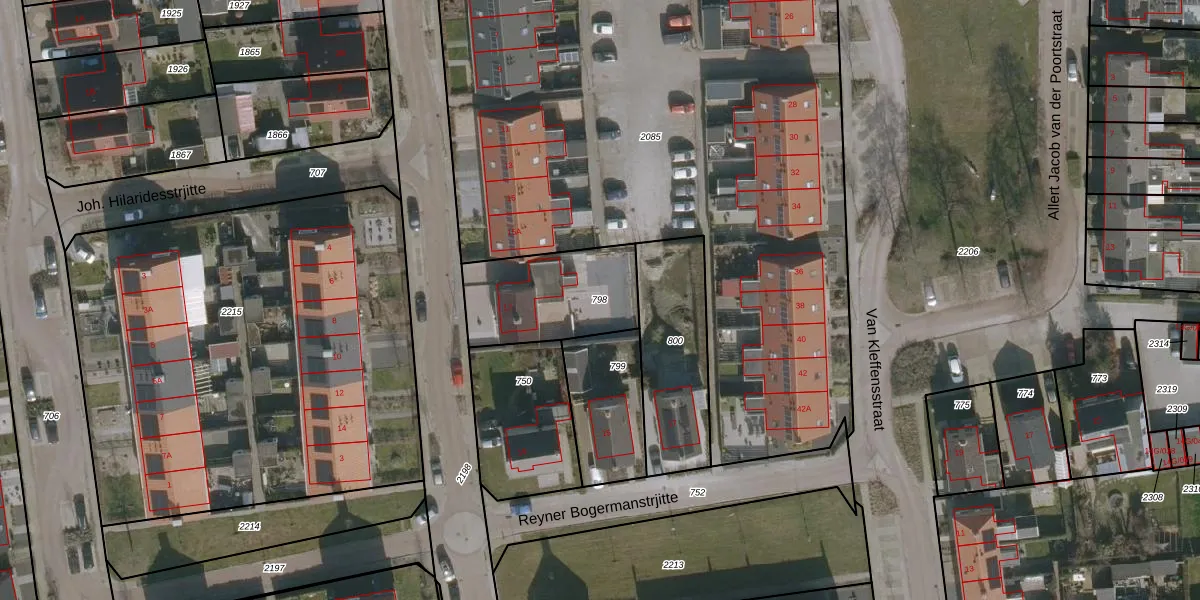 Gebruik de zoekbalk of klik op een perceel om informatie over het perceel te bekijken.