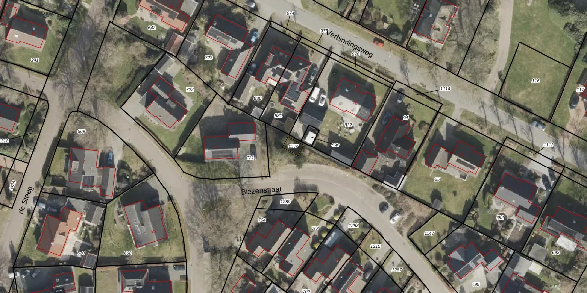Gebruik de zoekbalk of klik op een perceel om informatie over het perceel te bekijken.