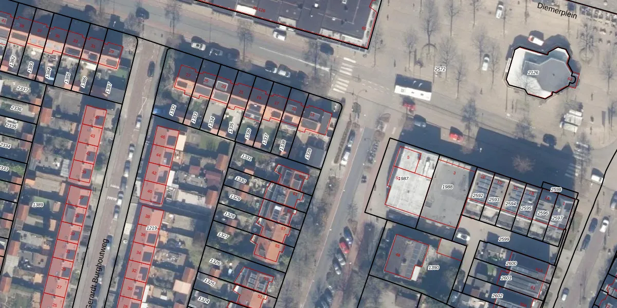 Gebruik de zoekbalk of klik op een perceel om informatie over het perceel te bekijken.